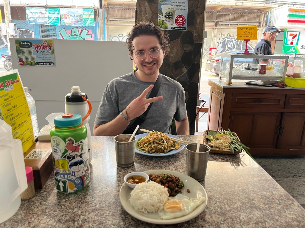 For 130 Baht, we shared a very large pad Thai, pad kra pao, and Thai tea! It was a delicious meal… another place we might go to again!