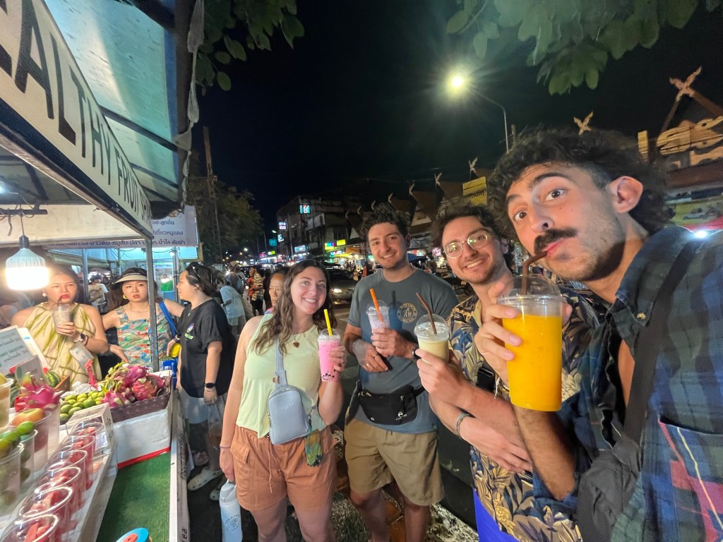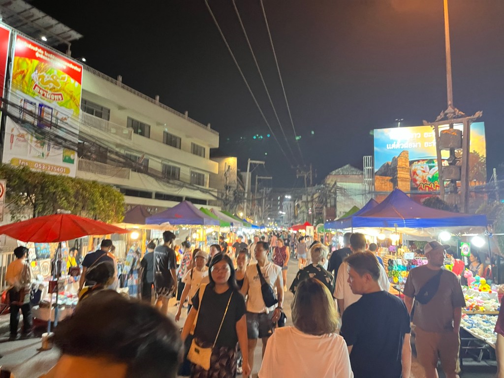 We arrived at the Wua Lao Road walking street market. This market was super long and had everything from clothes to food to drinks!