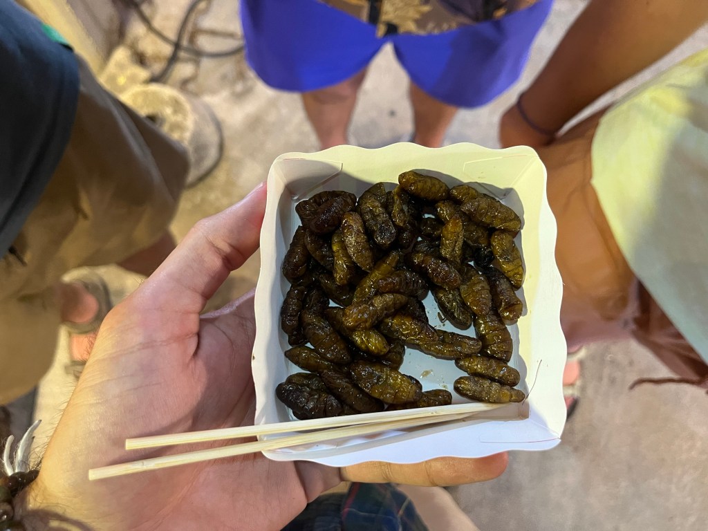 While at the night market, I decided to try silk worms again (I gave some to Mina, Ben, and Sam). These definitely weren’t as good as my first go, but I still enjoyed them. The Thai locals were pretty impressed that I was just munching away!