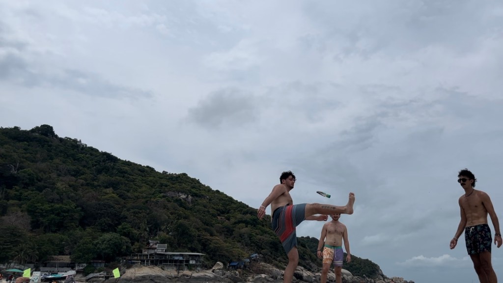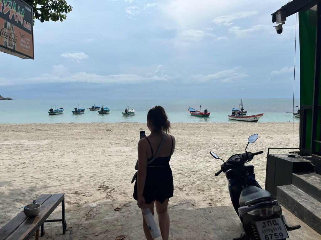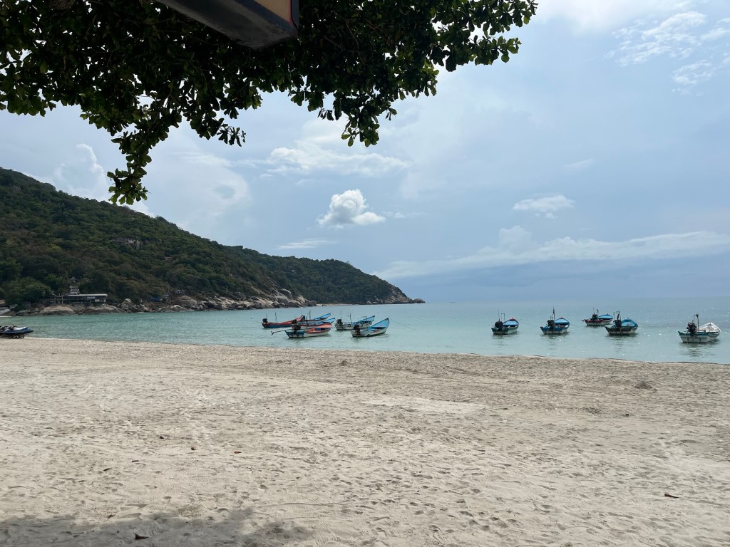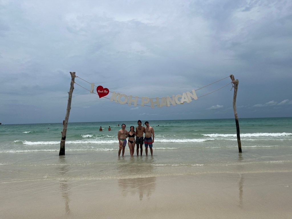 This beach is the one used for the full moon party. And since there’s no full moon currently, the beach is very quiet and peaceful. But we had to take a picture with the tourist sign, because we do ❤️ Koh Phangan.