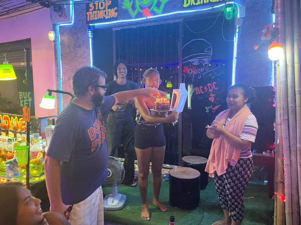 Day 126! Today was such an amazing day. I got to spend it hanging out with my amazing cousins, some friends I had met in Bangkok, and my friend Aaron who I met last year on this island! Aaron and his girlfriend, Chira, ended up making this birthday extremely special but you’ll have to read on to find out why!