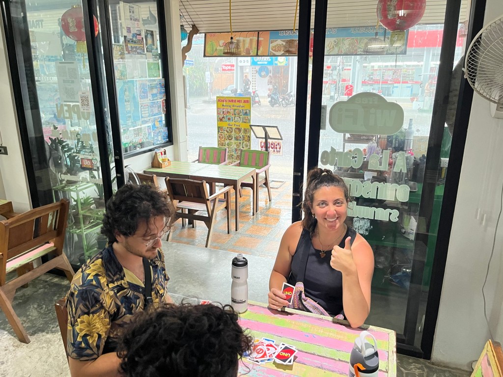 But luckily for us, the restaurant had UNO. So we played for a bit until the rain subsided.
