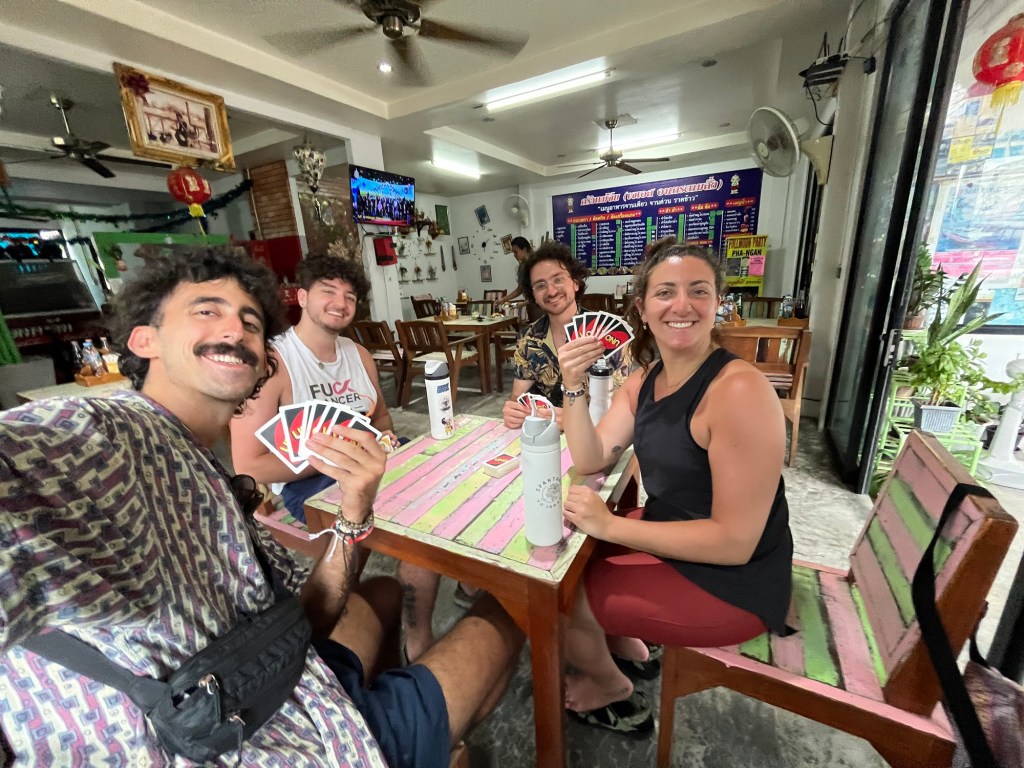 I taught Ben, Mina, and Sam the rules my friends Harry and Grace taught me in Ninh Binh. We had a blast playing a very hectic game of UNO.