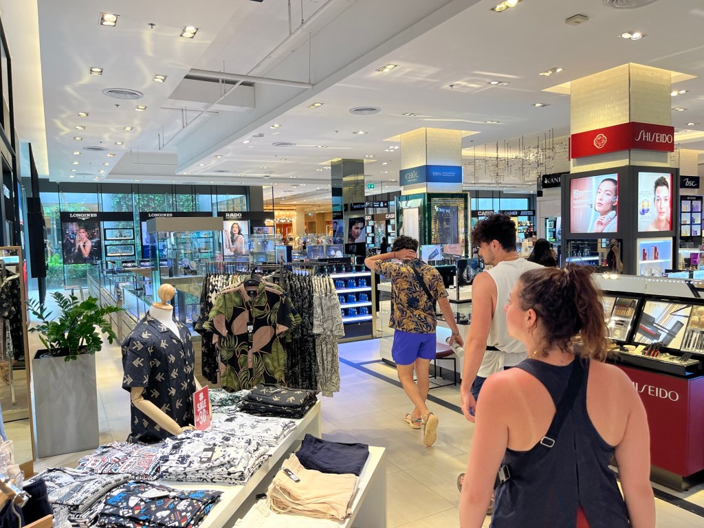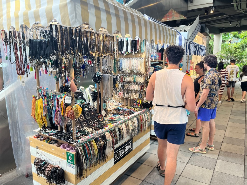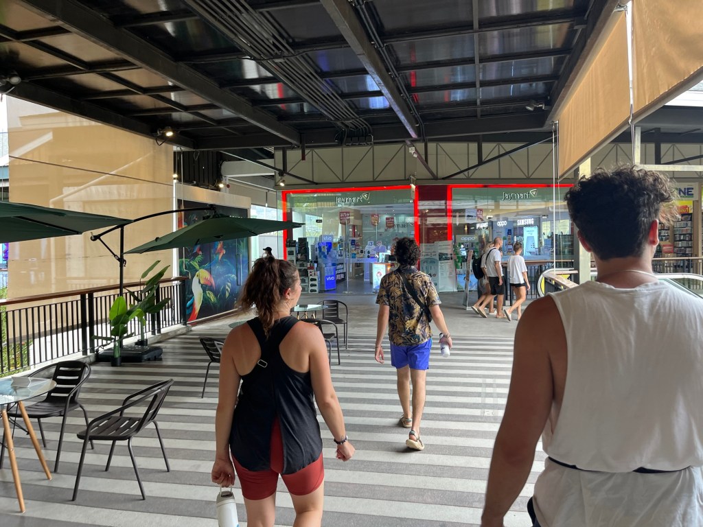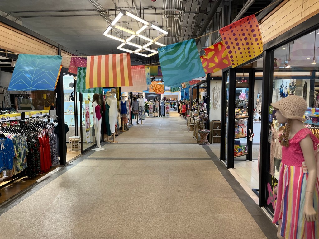 The outside of the mall was a medium sized market with food, jewelry, and clothing vendors. The inside of the mall was filled with more boutique looking stores, fast fashion stores, tech shops, and a grocery store.