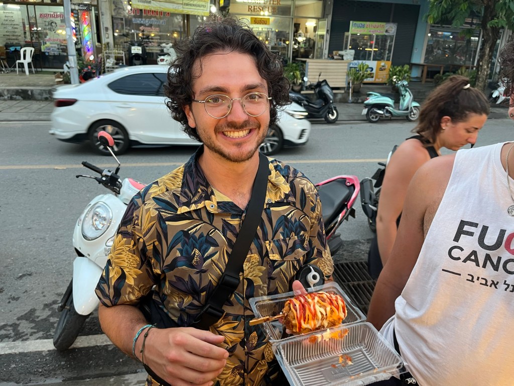 Ben bought a Korean corn dog for 79 Baht, which him, Sam, and I shared!