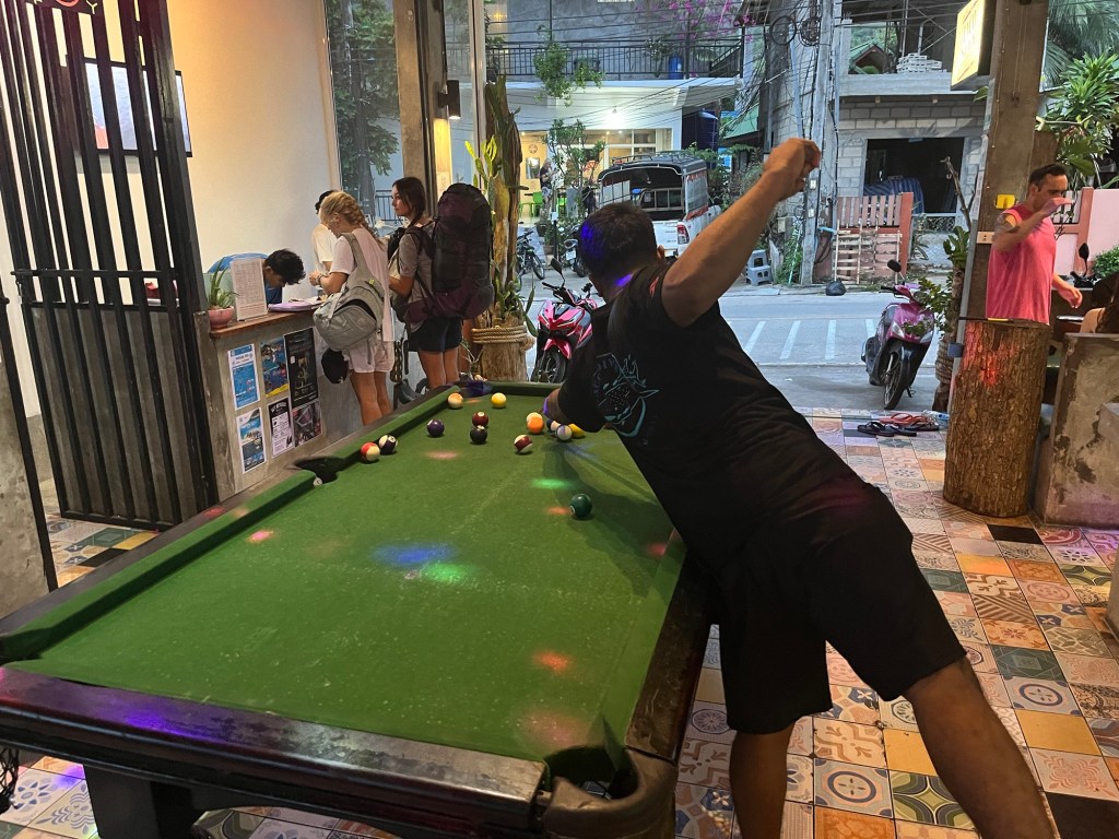I played a bit more pool against Mew, one of the hostel employees, while I waited for my food.