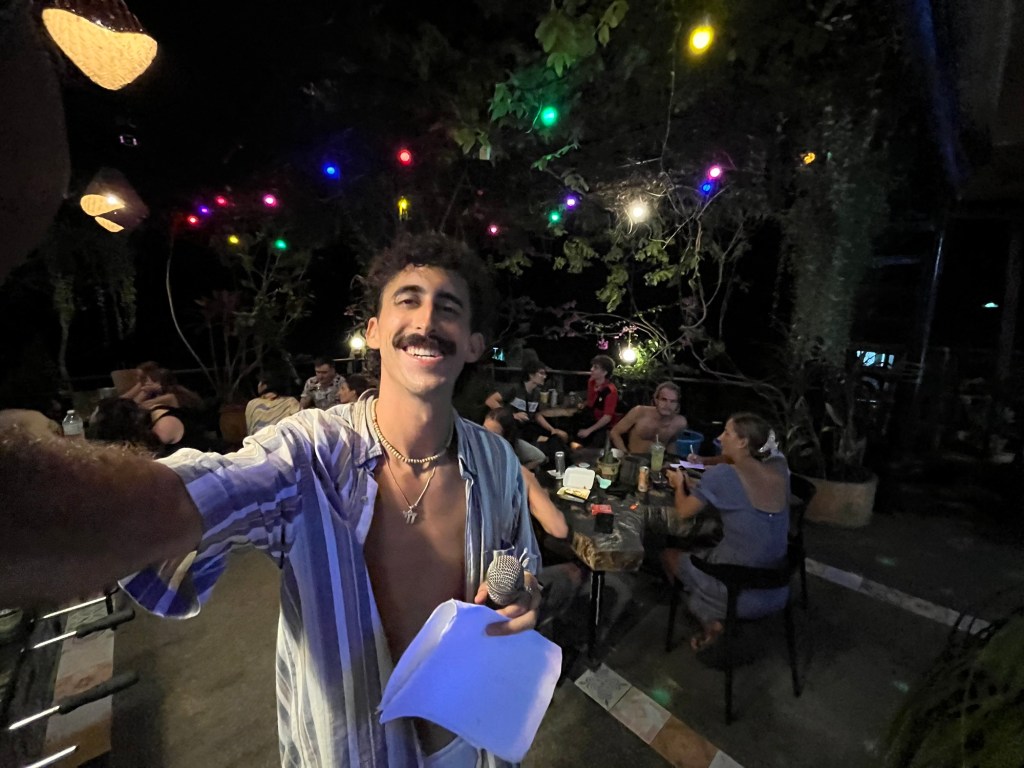 The quiz had 4 rounds: Thailand, general knowledge, pictures (making celebrities), and a music round. It was a fun and goofy time and I got to improvise a lot when bantering with players or riffing on the question. I really feel in my element in this role!