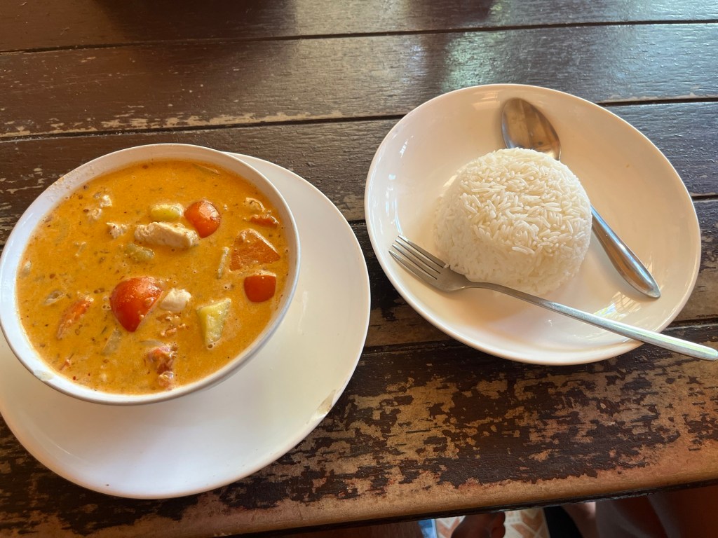 Lunch time rolled around and I got myself a mango smoothie and a massaman curry. I’m slowly working my way through the hostel menu and so far, everything is fantastic! It also helps how cheap it is for me to get.