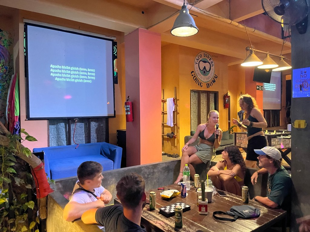While eating, I actually had a chance to chat with one of the Taco Shack owners, Kai, along with Paul (the other volunteer), and Travis (a newer friend who’s been at Taco Shack for a while). After that conversation, two of the dive masters, Pauline and Kiki, came over to chat and so did a traveler Tyler who’s from Canada.