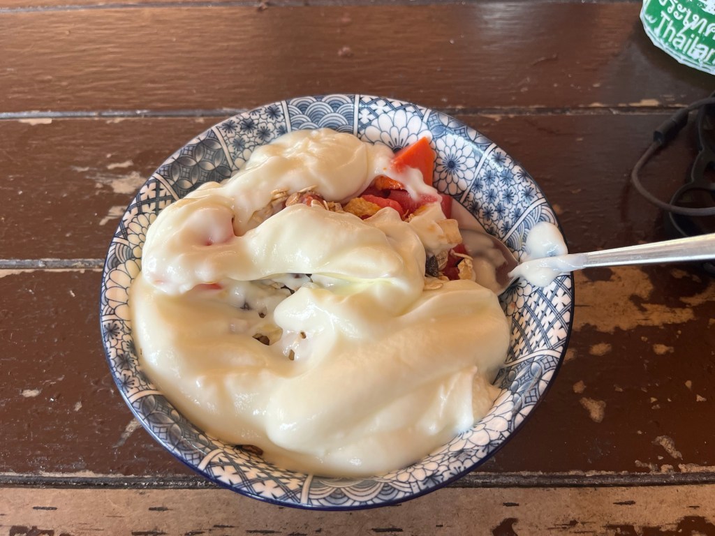 But after showering and watching one episode of Bleach, I headed to the lobby of Taco Shack to get a muesli bowl and start another morning of socialization.