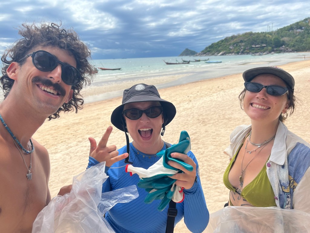Cleaning up trash on Sairee Beach in Koh Tao