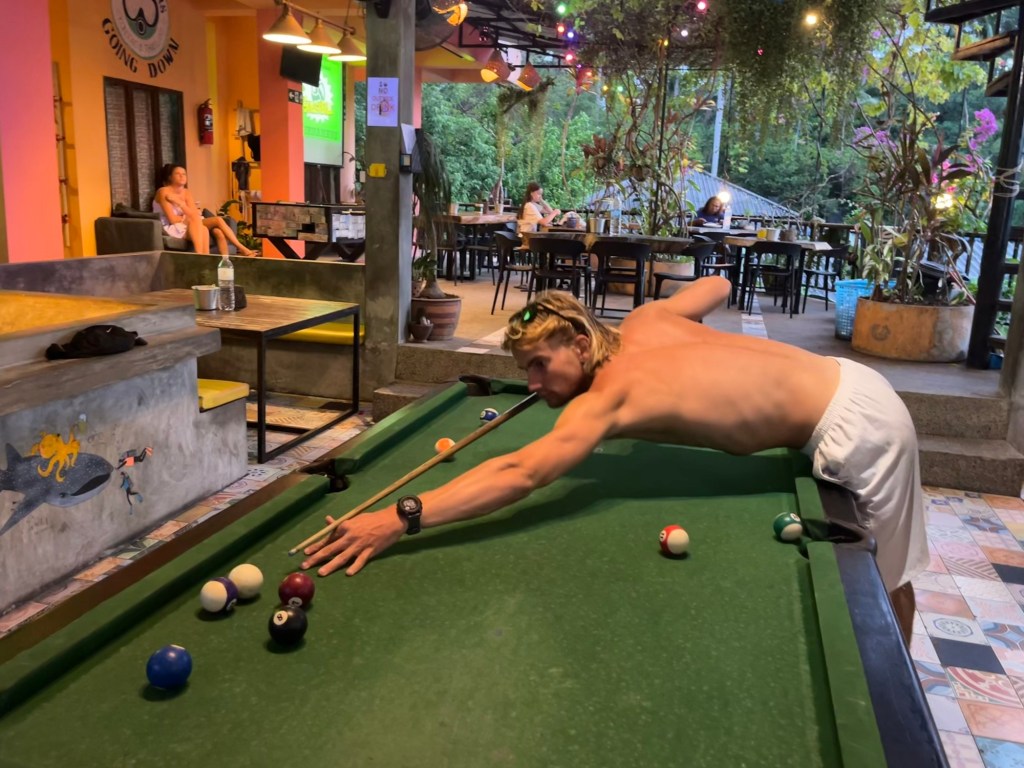 We had talked about maybe going to a viewpoint to watch the sunset. But in the end decided against it since it was very cloudy. So Olly and I played a game of pool… which I won as well!
