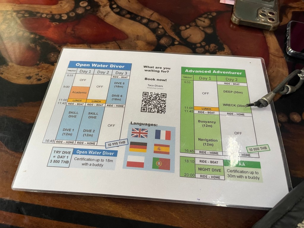 The set up process took a little bit. I needed to sign some documents and waivers. I had to fill out some questionnaires about my health and wellbeing too. I then paid 10,500 Baht, downloaded the Scuba Schools International (SSI) app, and I was officially signed up.