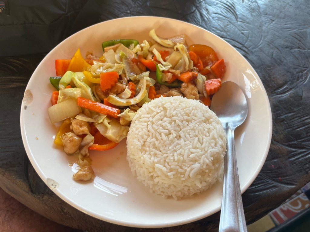 I then went back to the hostel for a post workout meal of fried vegetables with chicken and rice.