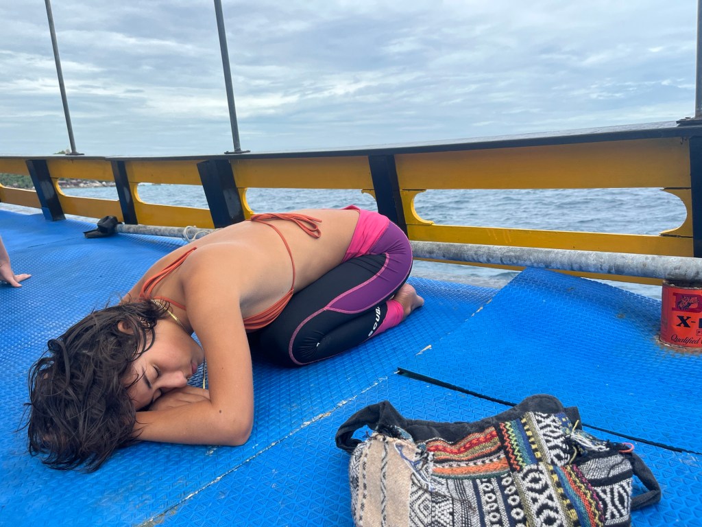 Me on the other hand, I was having a blast! The ocean is my happy place and even in choppy waters, I’m a big fan. I had a big smile on my face as I tried to balance standing up and enjoyed rocking back and forth with the boat and the waves.