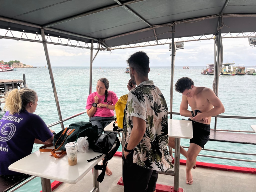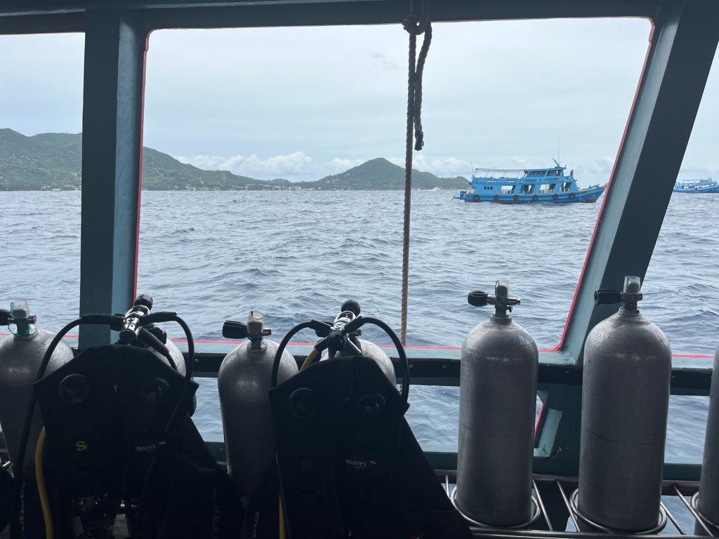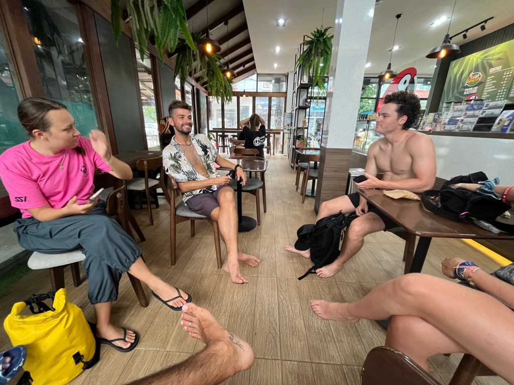 We were on the dive point boat again. The boat wasn’t leaving till 8:30am but we still had to leave with the Taco taxi. So once we were at the pier we set up our equipment and then went to a nearby cafe to hang until it was time to leave.
