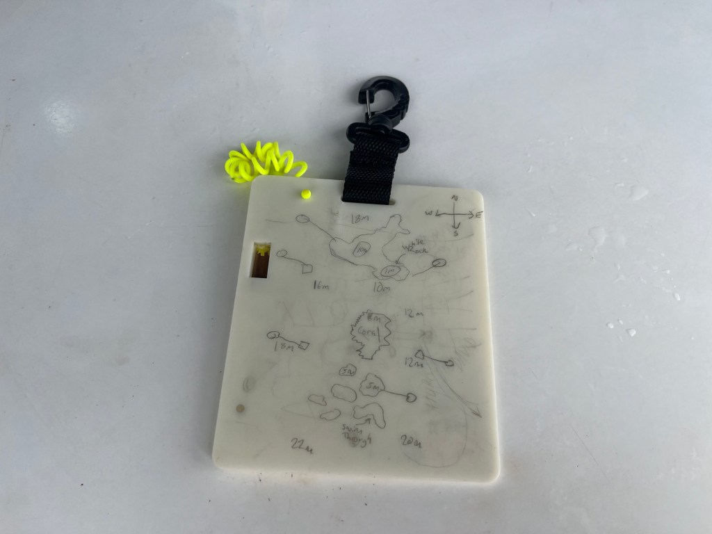 Theo did make me draw out the map and use it to mark down landmarks I saw and help orient me on the dive site too. I also correctly drew out route on it after the dive.