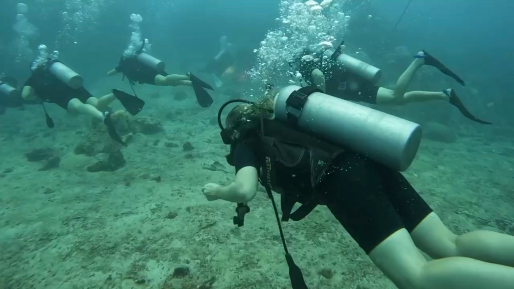 During the dive, I was also on GoPro duty! One of the students had a GoPro and since Theo wanted their hands free, it was my responsibility to, A. Not lose the GoPro and B. Take cool videos of the fish, coral, and divers!