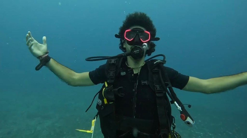 On this dive we took the divers to around 30m. Theo brought an egg with him, which cracked on my advanced dive so I was excited to see what happened… and… it basically compressed into just the yolk and it floated around like a ball in the air. It was super cool and we passed it around by pushing the water.