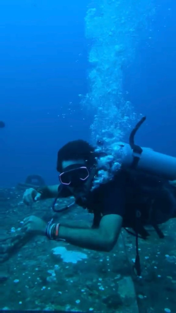 Our second dive, unfortunately… was also at Japanese Gardens. I’m glad we still got to dive, but the waves were getting so bad it didn’t make sense for the boat to move from where we were already. So instead of doing perfect buoyancy somewhere else, we would be doing it at Japanese Gardens again.
