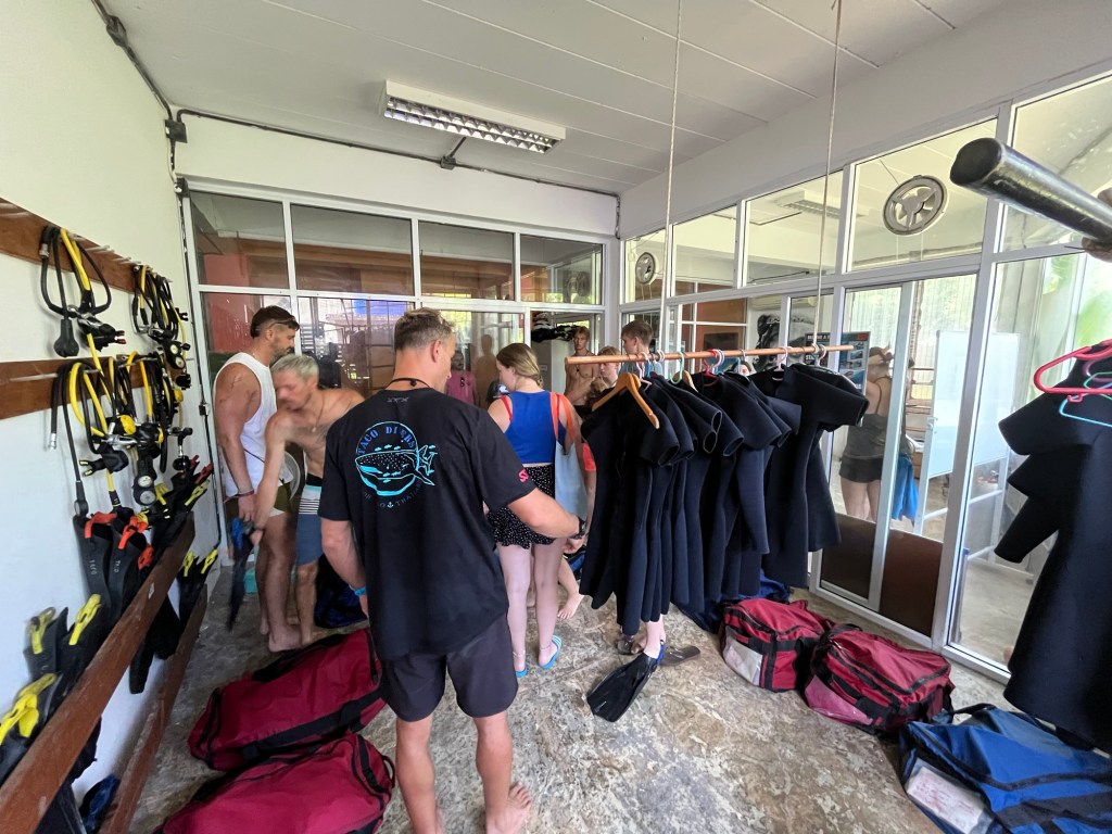 After lunch came assisting time. One of my responsibilities as a DMT is to help set up bags for customers. So we went downstairs, along with some instructors, to help put the freshly cleaned dive equipment (from the morning divers) away and help set up the bags for the afternoon divers.