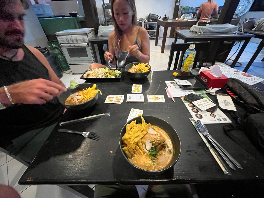 But the universe had other plans. I randomly decided to go a bit further to the big 7-eleven on the island. And here I ran into Chelsea and Hector, two of the Taco Diver instructors. They were just heading to dinner and to play some cards and they asked if I wanted to join… I thought sleep could wait and decided to join them for some cards.
