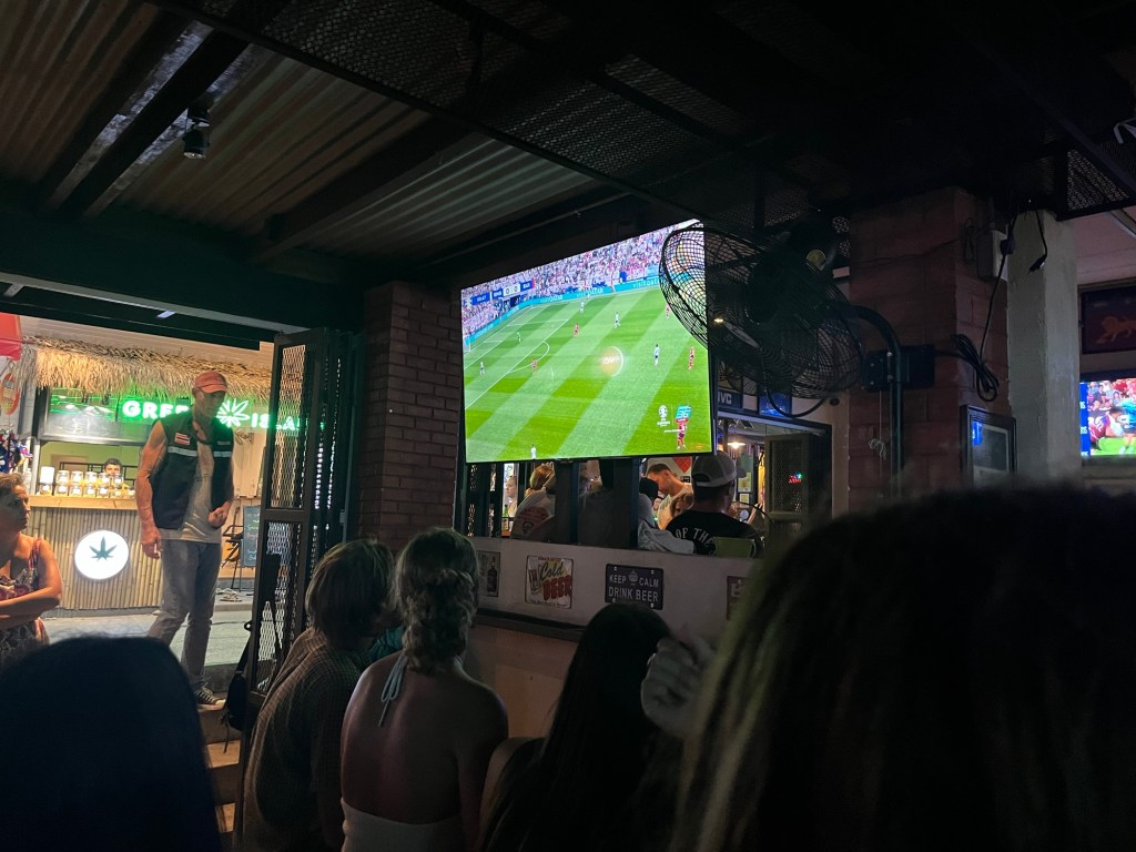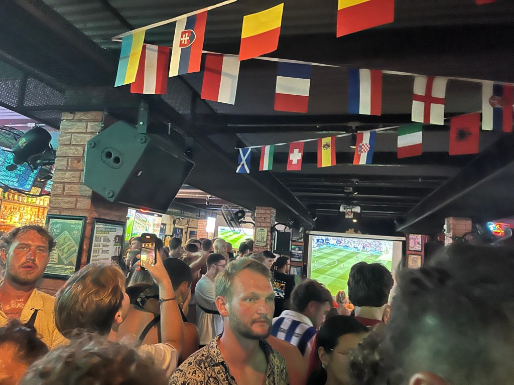 The environment was electric with a ton of English and Swiss supporters. There were definitely more English than Swiss, but the first goal went to Switzerland and there was a sizable uproar in the bar. But England then came back to equalize the score which pushed the game into extra time and then a penalty shootout.