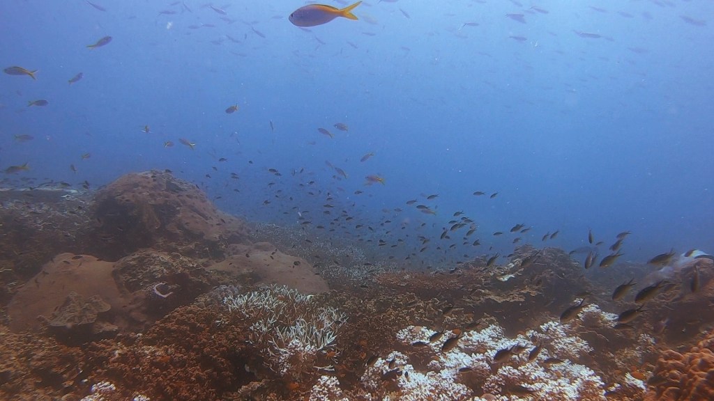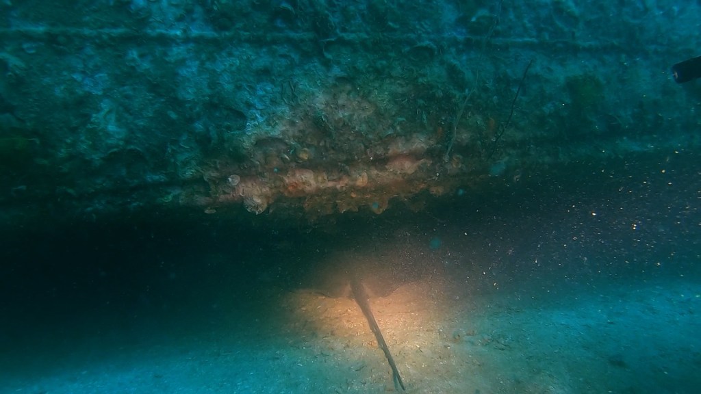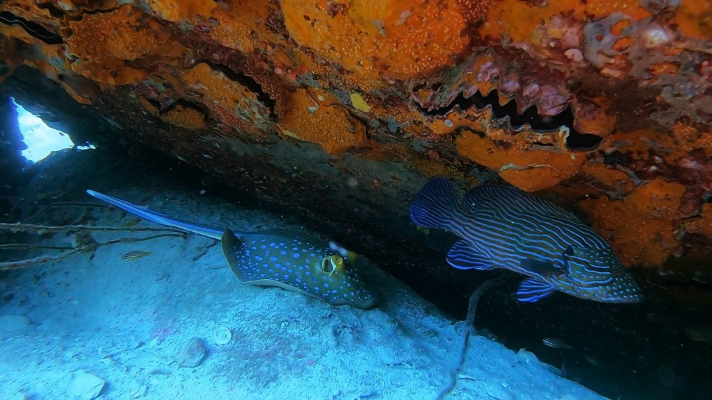 I was guiding Michael again today. The visibility was decent again, so I took him to the bottom of the shipwreck to see the Jenkins ray. The school of massive trevally were still hunting the smaller school of fish, so Sattakut was just a wonderland of marine life! It’s quickly become one of my favorite dive sites as of late.