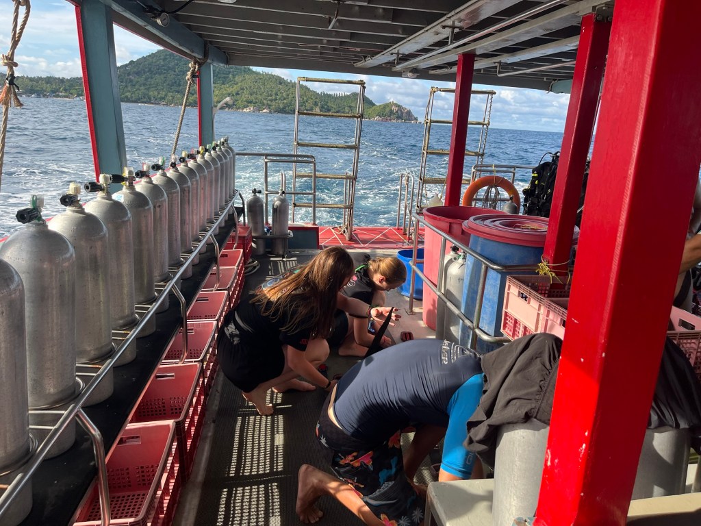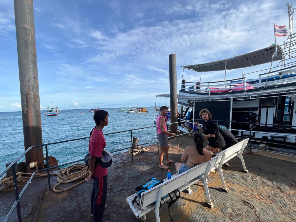 By this point, Iris, our manager, decided to put us on the Dive Point boat last minute. So we quickly ran to the other dock and hopped on the boat just a minute before it was set to leave.