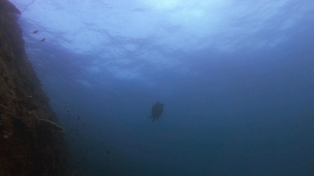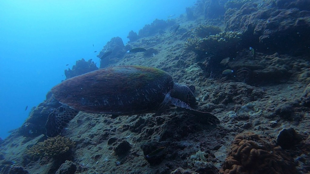 I was super excited to see this green turtle, it’s not that common to see them while diving since they’re usually relatively shallow. But my fun diver seemed rather unenthused. I asked her after the dive and she had seen a number of turtles while diving in Indonesia… so I guess she just got spoiled a bit. Either way, I was pumped!
