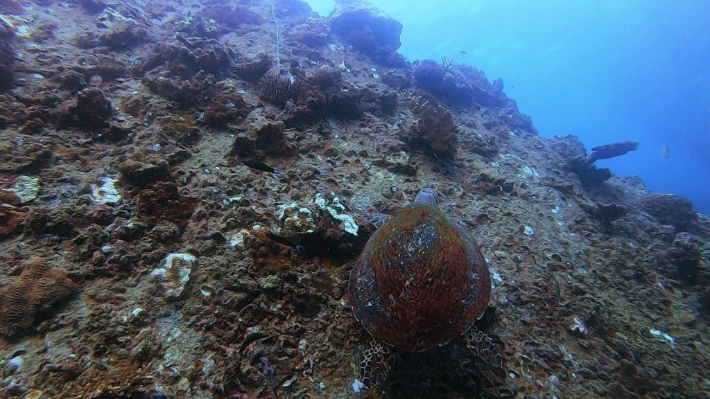 This wasn’t the only creature in the water today that I rarely see… during the dive a random diver gave us the sign for turtle and pointed to the opposite side of the dive site. I was pretty shocked to see this and trusted this persons tip. So we made our way across the dive site.