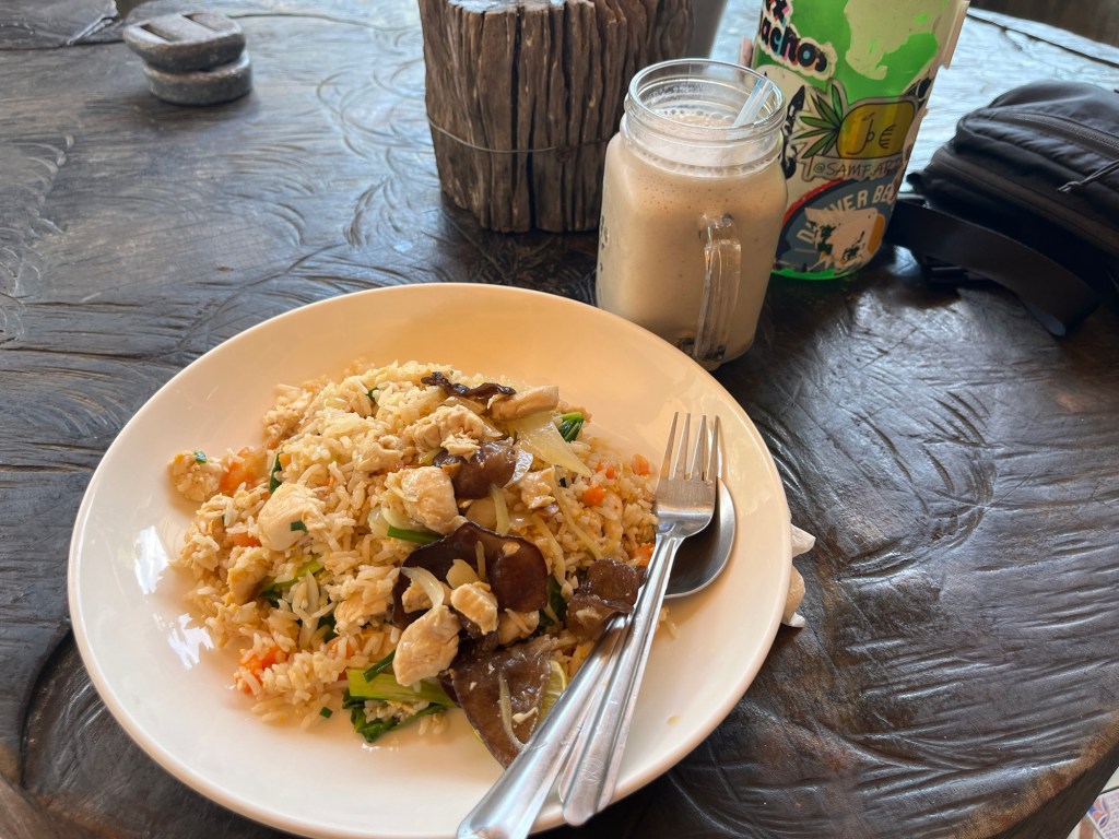Nui, my refresher and hostel receptionist, had some leftovers from her homemade lunch and she put them on top of my fried rice. It was very sweet of her and very delicious.