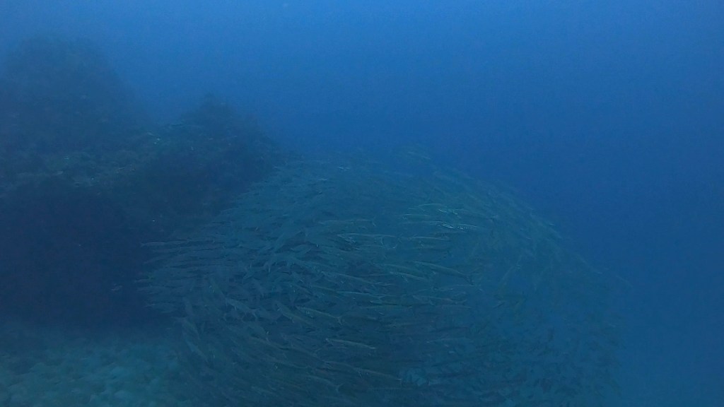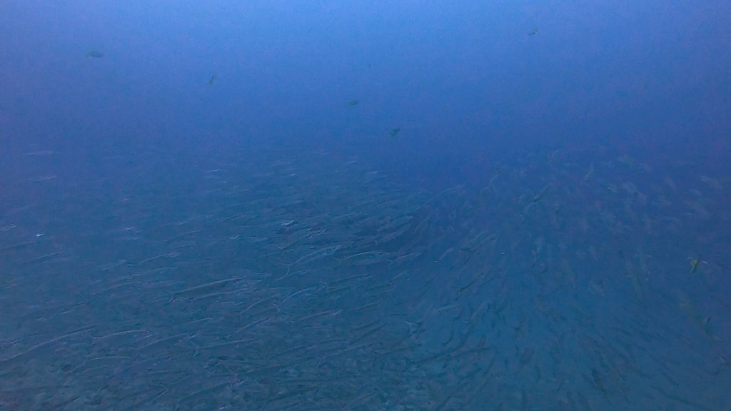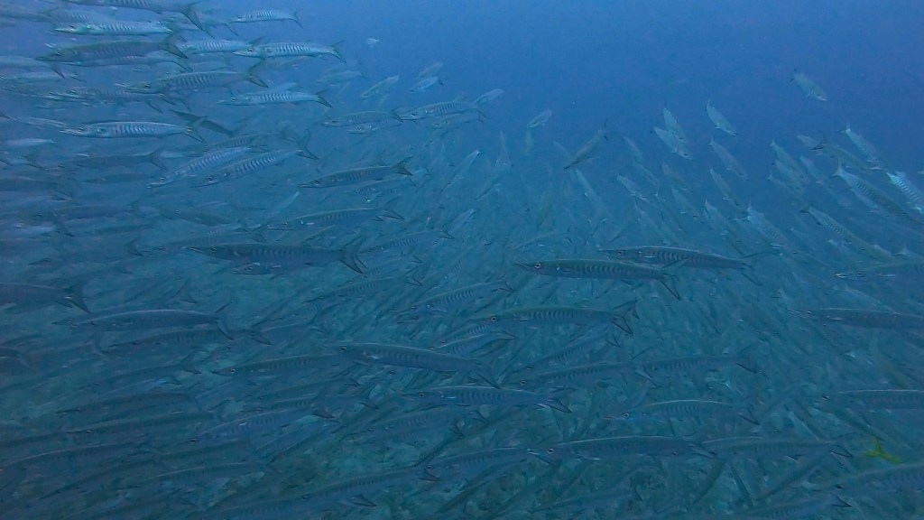 We also dove into another insanely large school of barracuda and they ended up circling us as we passed through.