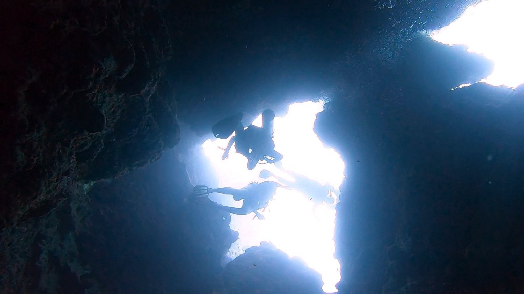For our first dive I intended on finding the chimney swim through and descend into it. The chimney swim through is a fairly large hole in the rock that makes up Sail Rock. It has an entrance/exit at 6m, 12m, and 18m and once you’re in the chimney it’s fairly wide and you can see to the surface.