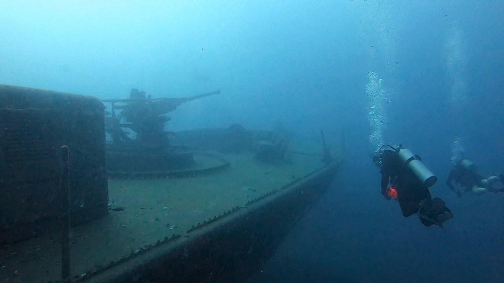 We started off with the shipwreck. The visibility was actually pretty good today! So I was able to take my fun divers to the bottom of the wreck. We were able to see around the bottom for the entire ship, it was awesome! There wasn’t much down there, but there was one puffer fish that wasn’t too happy with my torch light.