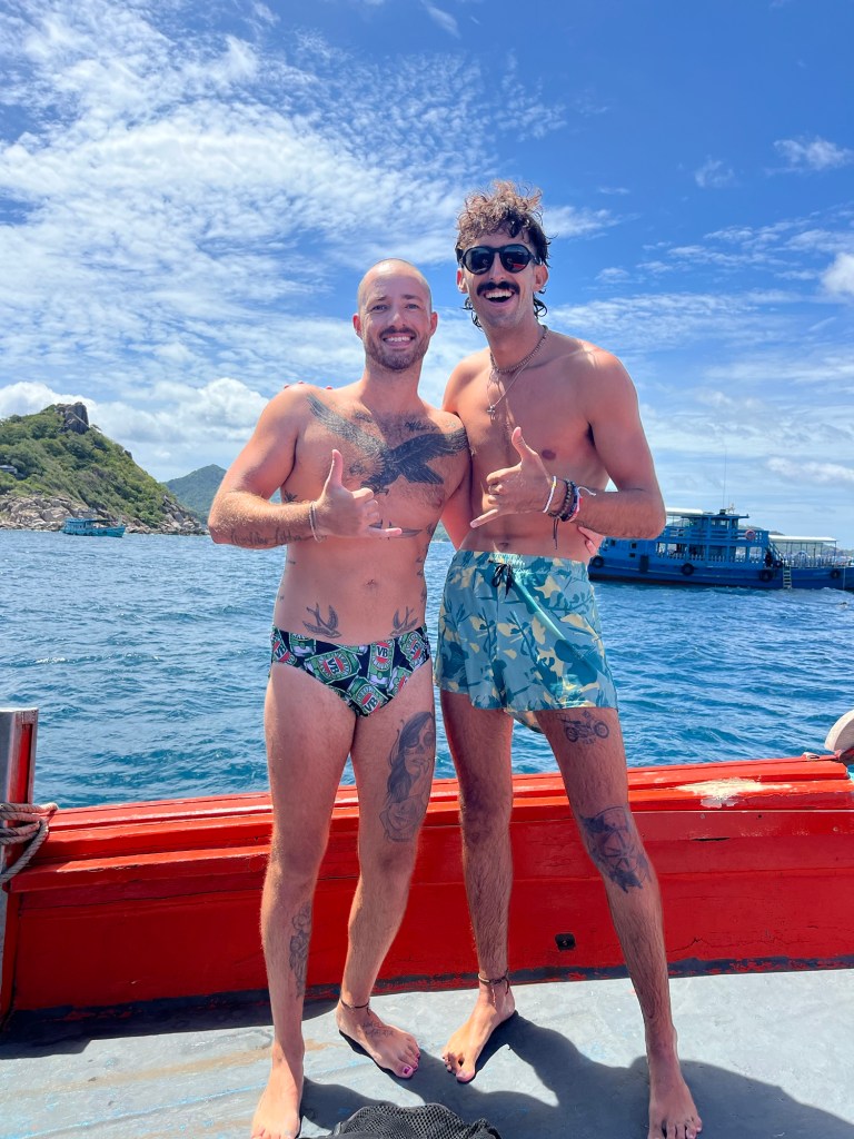 We descended into the ocean and we were met with some pretty subpar visibility. On top of that, there wasn’t a whale shark… but there were a lot of boats trying to dive at the dive site today. Makes sense!