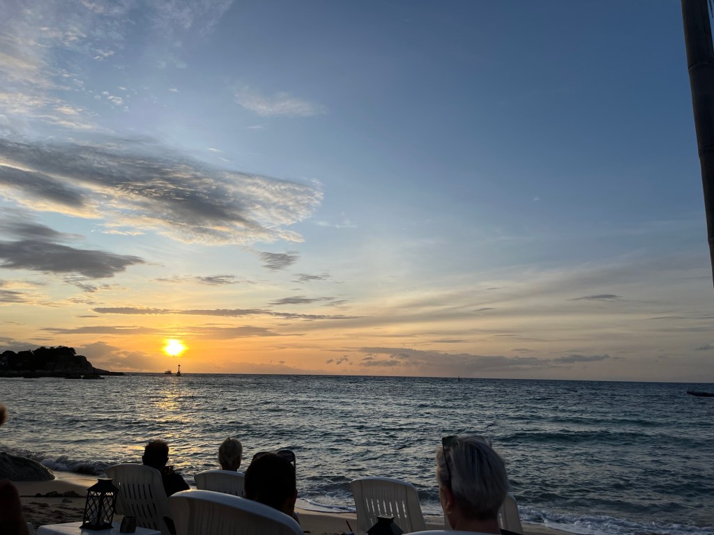 I went to Taco a bit later in the day to play more pool and then once everyone got back from diving, we headed to Bamboo bar to watch the Sunset for Kevin’s last day on the island.