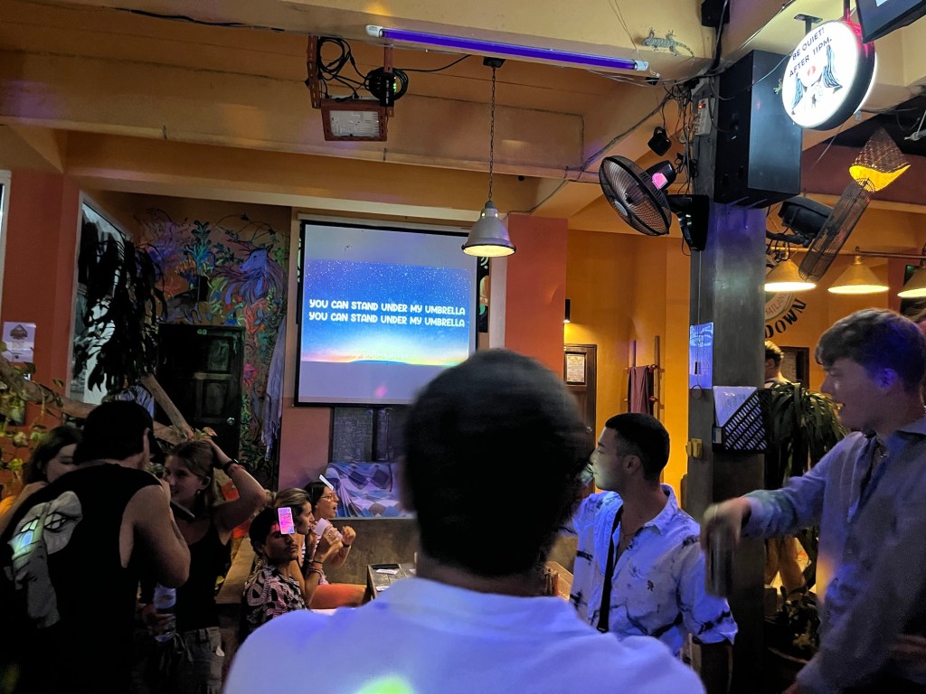 At first the karaoke night started with just Tom, Chris, and I. But as always, as the night progressed, everyone got involved and were dancing and singing to the songs.