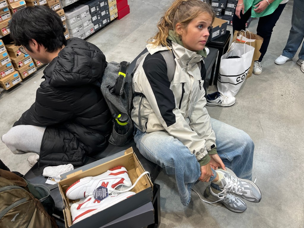 Immy and I’s expedition for the day wasn’t done yet! Immy needed new shoes. She’s just been wearing Crocs and with the cold rainy weather today and needing to go into places to find work, she wanted better ones.