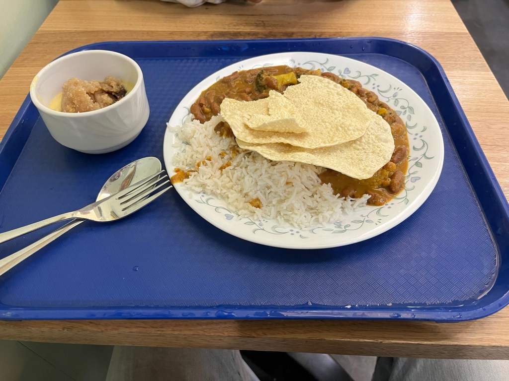 But I was excited for this meal because I found a “hidden gem” on Reddit. There’s a place downtown, for $10 AUD you get all you can eat vegetarian and vegan Indian food. So whatever they made that day, is what you get. Today was a kidney bean and veggie curry with rice and date halava.