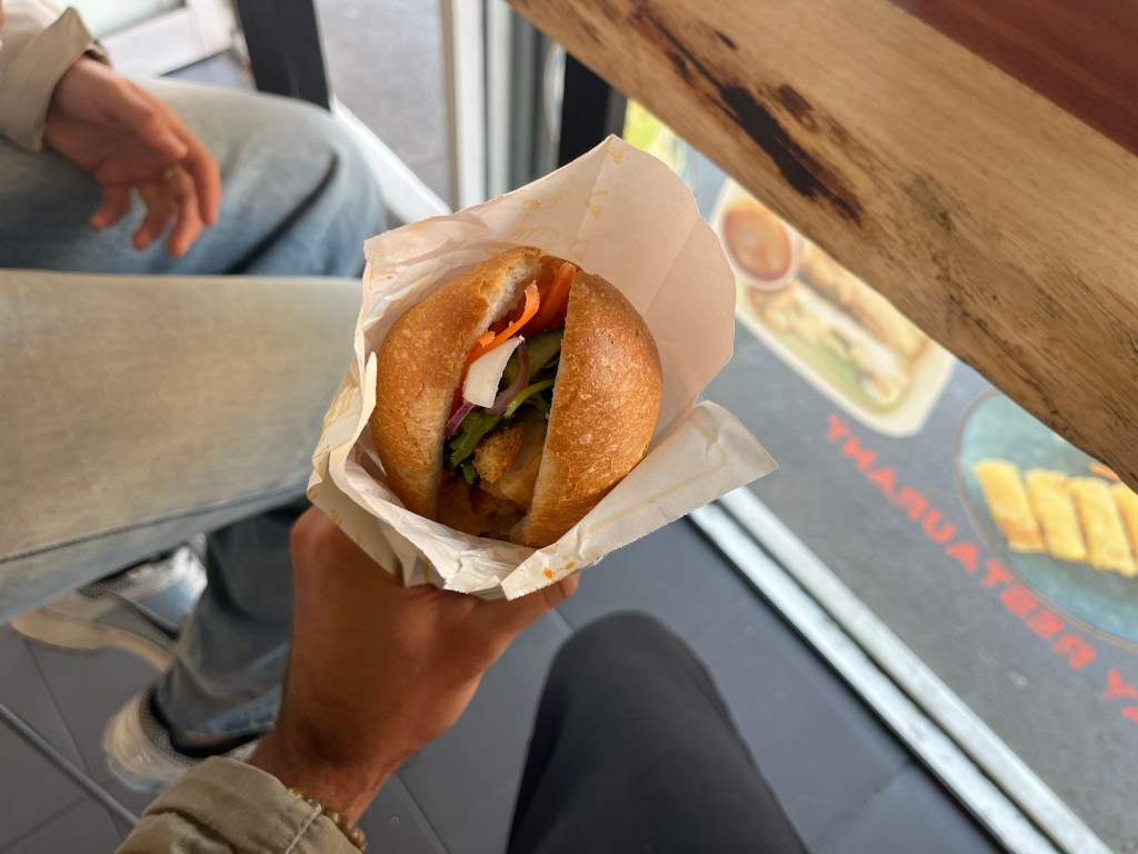 I started getting pretty hungry and at one point we walked by a Banh mi restaurant. So I popped inside and got a fried tofu Banh mi for $10 (7x the amount I’d pay for one in Vietnam).