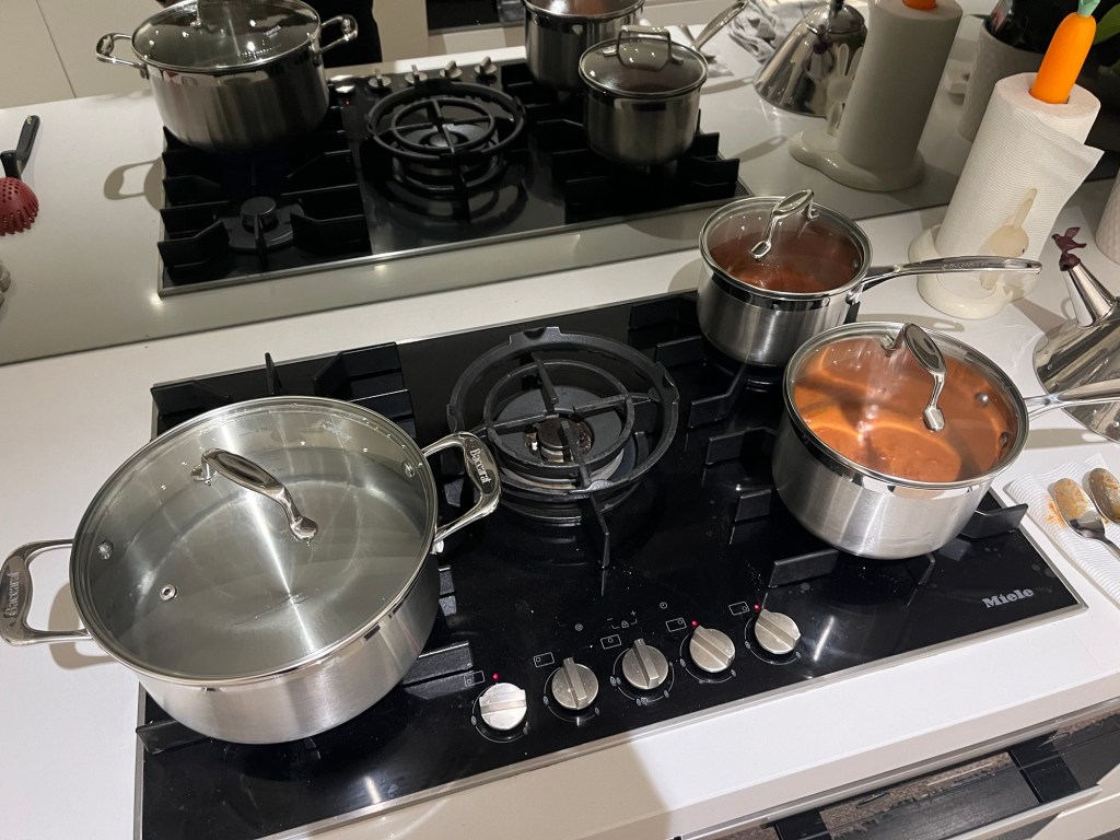 Everyone was out of the house, and Sam’s mom asked me to help with some dinner prep. So I started boiling a pot of water for ravioli and got the pasta sauces warming up for when she got home.