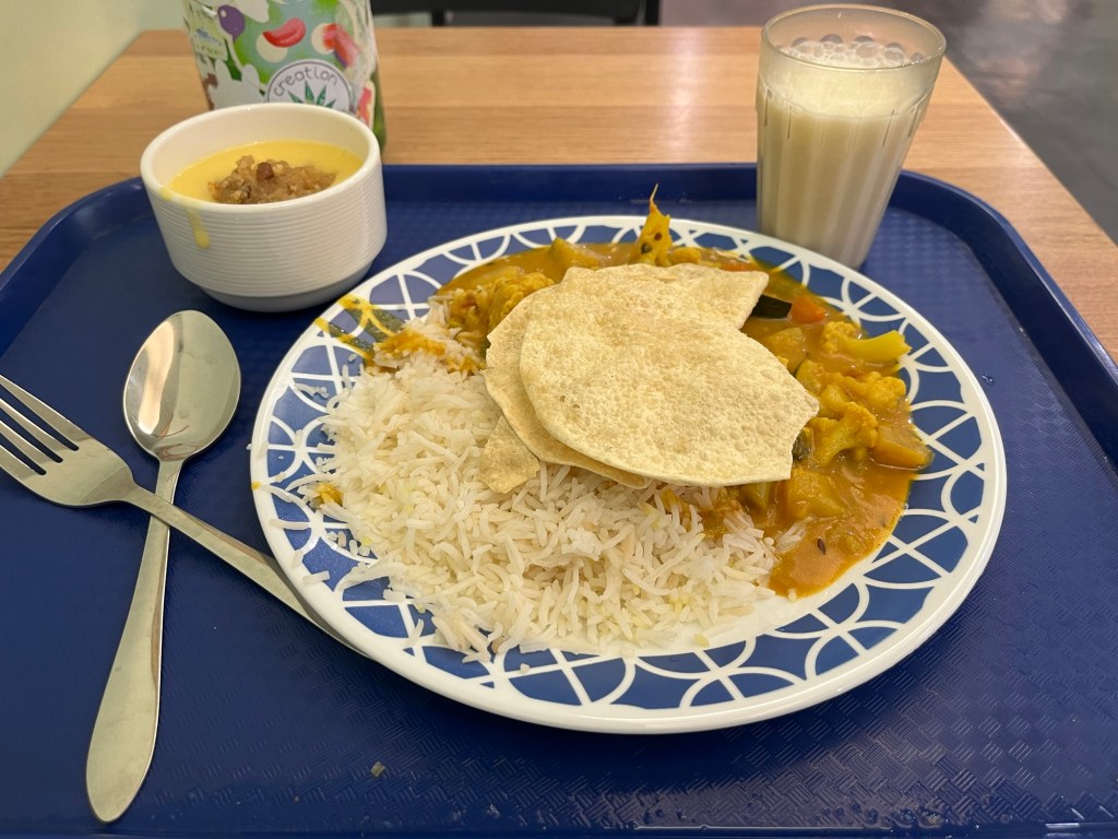 My wandering took me to my favorite Indian buffet, Crossways. Today they had Malaysian tofu curry with rice and orange Halava. Their meals are simple, but really tasty. I was very hungry too so I had two big plates of the curry.