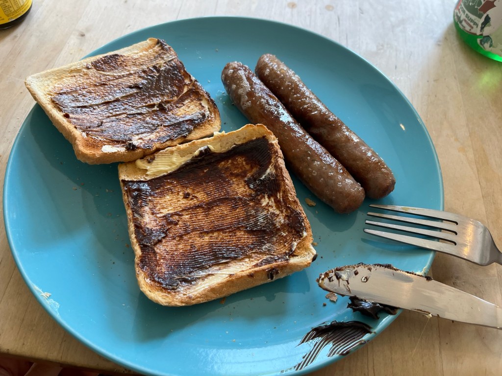 I went the English route today and had a couple of sausages with toast, no beans though (unfortunate).