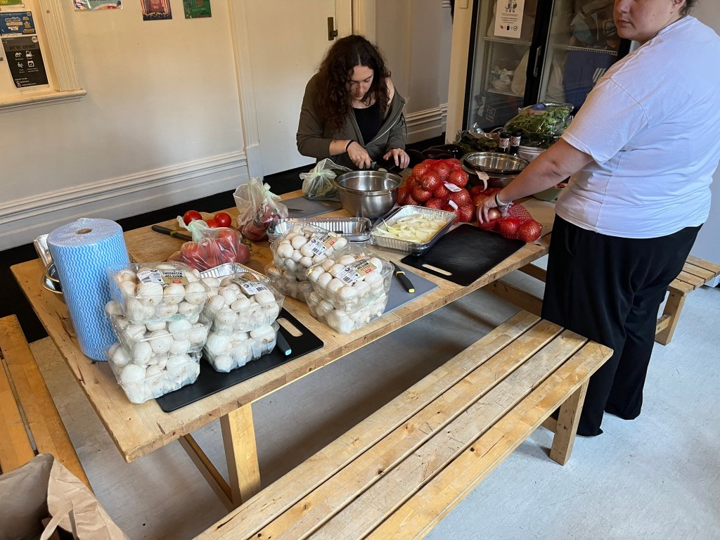 When we got back to the hostel, it was nearing the time for our hostel barbecue! We got inside and saw a ton of vegetables sitting on the table with one staff member cutting them. So we offered to help.