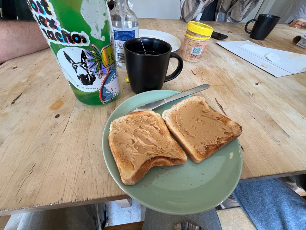 I wasn’t super hungry this morning, after feasting at the barbecue last night. So I made myself some toast and peanut butter and a nice warm tea.