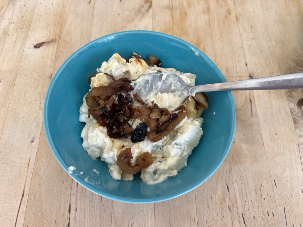 There was leftover potato salad and cooked onions from the barbecue, so I had some of that and heated up the rest of my chicken as well. It was a perfect snack before going out drinking with my friends.