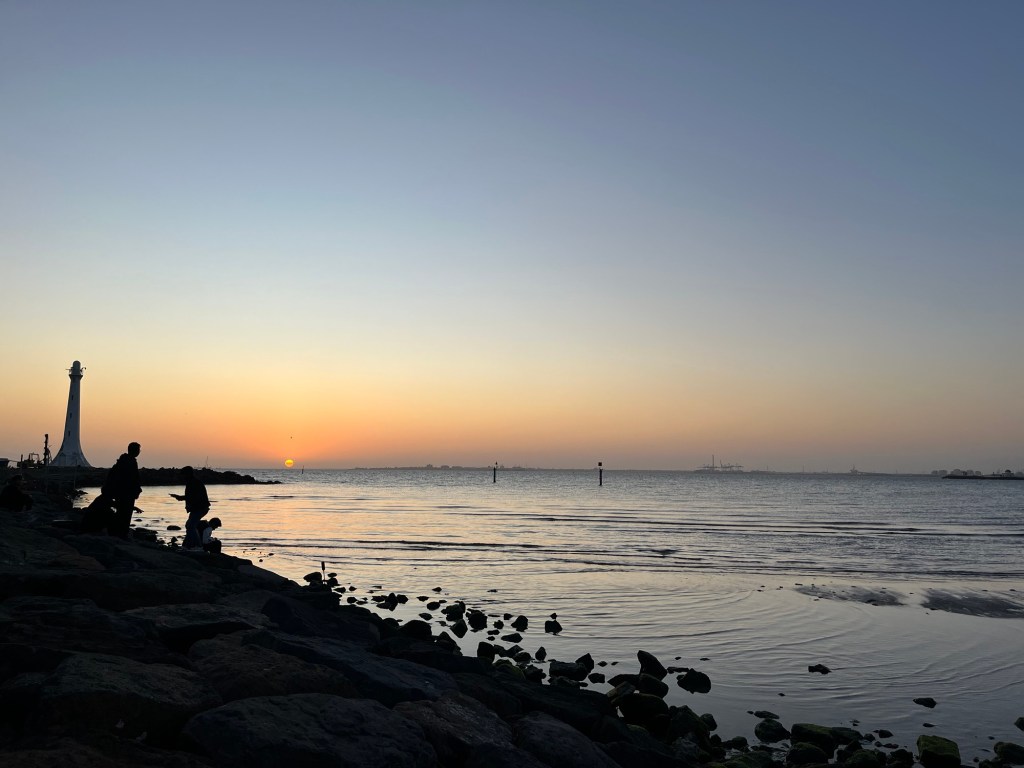 The drinks were nice, but we were on a mission, so we had to hop back to the beach. St. Kilda Beach is known for having spectacular sunsets. So we made our way over to a good spot to watch the sun dip down.