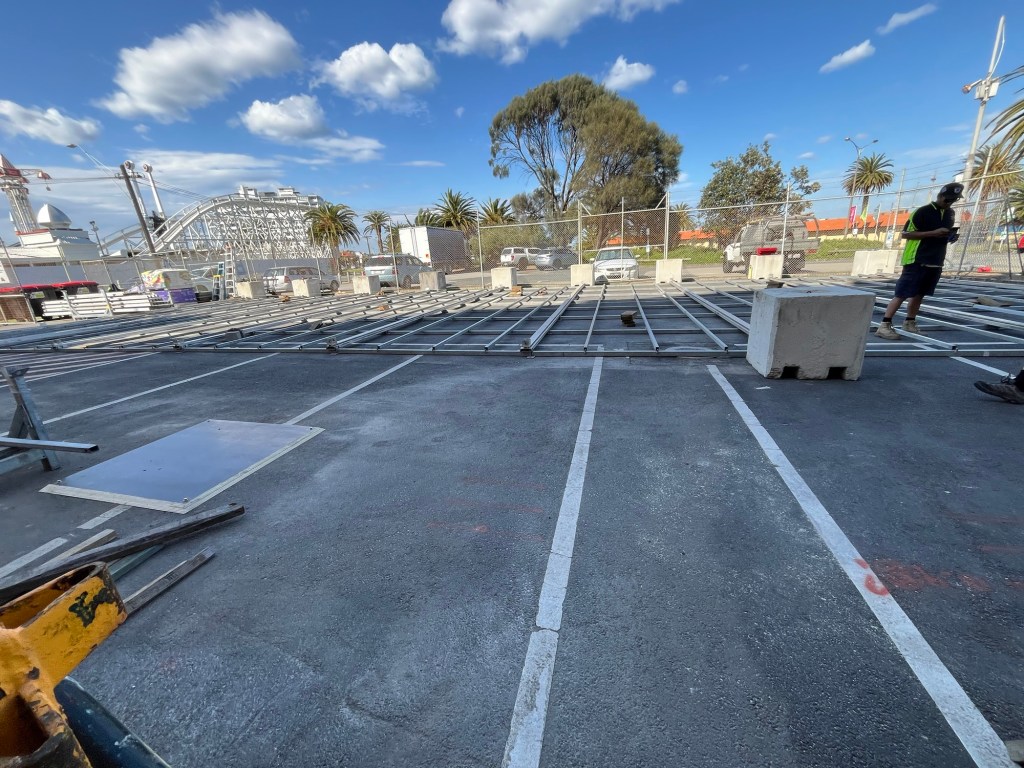 I’ve actually walked by this building a few times now. It’s right next to St. Kilda’s version of the Santa Monica pier. It’s a giant concert/events venue and we were setting up a marquee tent in the parking lot (or car park as they call it here).