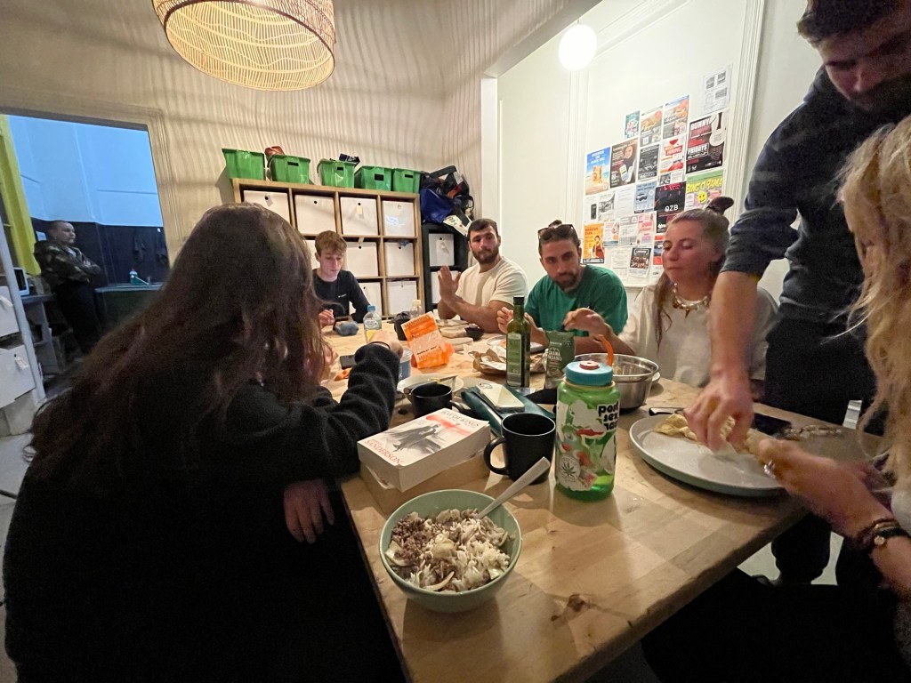 But… an announcement came over the speaker that the tram would only be going one more stop because there was a protest blocking the road. And of course, by this time it was raining so I’d have to walk in the rain to Immy. A few minutes later the tram driver came back on and said “we can resume as normal because… I guess the protesters have gone somewhere else.” The way she said it made the whole tram laugh and we continued on our way.